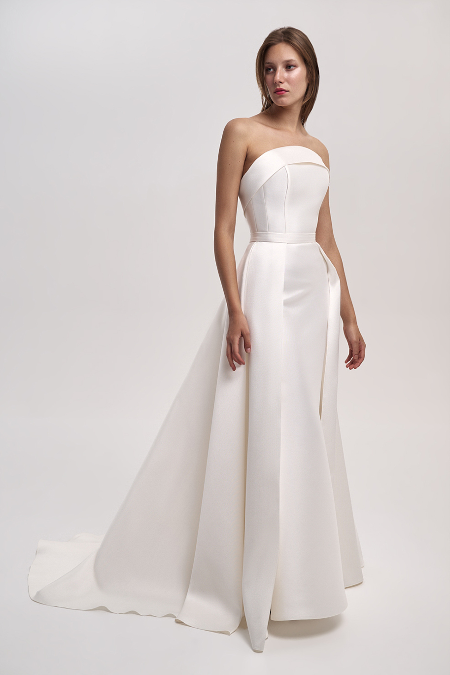 Весільна сукня з мікадо з баскою та шлейфом Бріель