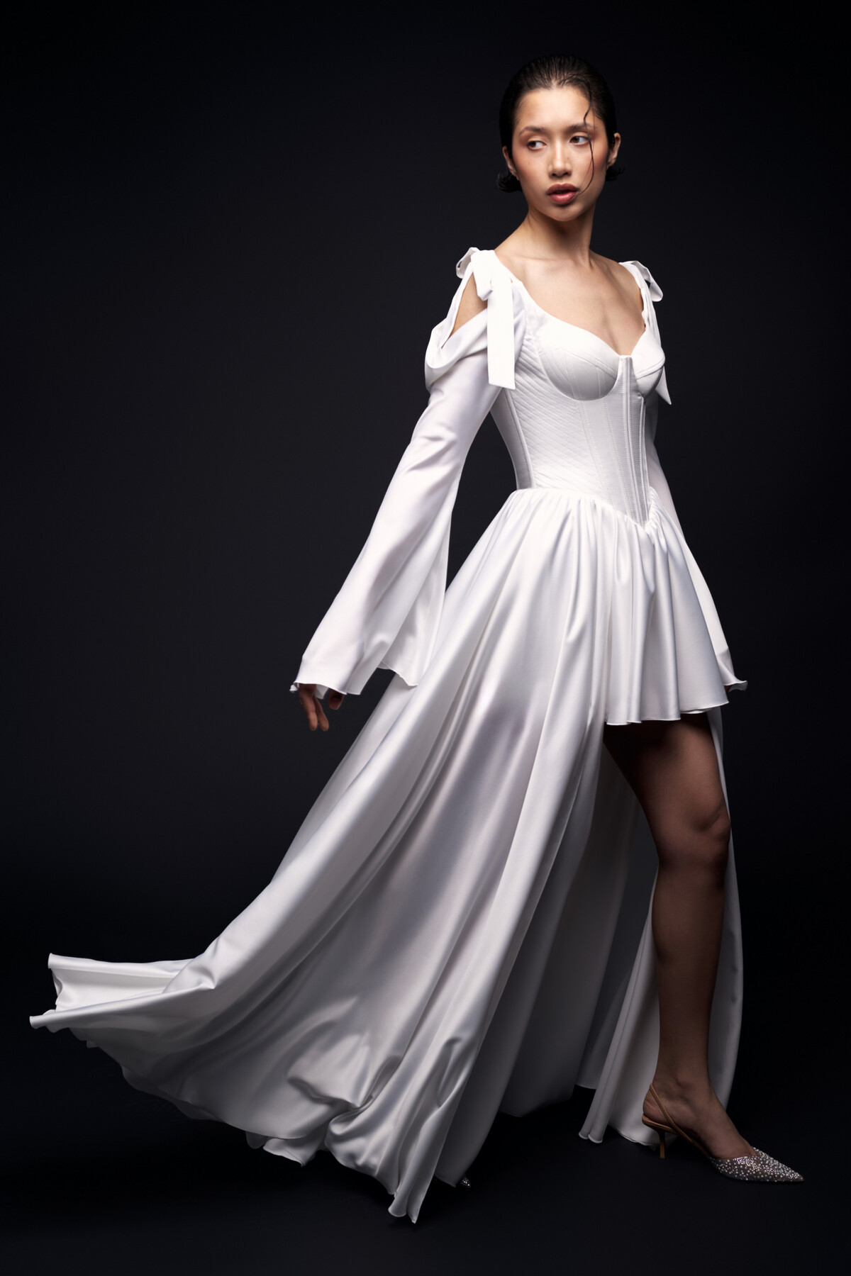 Весільна комбінована сукня Міра зі стрейч-атласу з корсетом та міні-спідницею